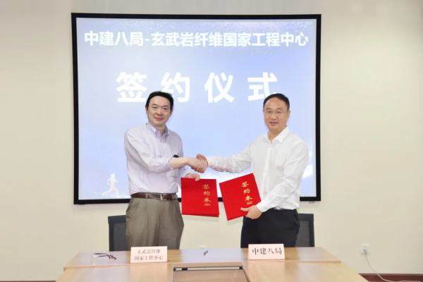 东南大学城市工程科学技术研究院、东南大学玄武岩纤维国家工程中心、江苏绿材谷新材料科技发展公司、中建八局工程研究院相关负责人出席仪式。
