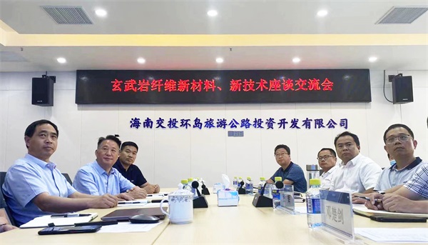 近日,东南大学玄武岩纤维国家工程中心副主任、绿材谷科技总经理魏星一行赴海南交投环岛旅游公路投资开发有限公司(简称“环岛旅游公路公司”)座谈交流,环岛旅游公路公司副总经理马吉倩出席并主持会议,双方就玄武岩纤维新材料、新技术的工程应用作了深入交流与探讨。东南大学玄武岩纤维工程研究中心顾问专家万习春作为特邀嘉宾出席会议。