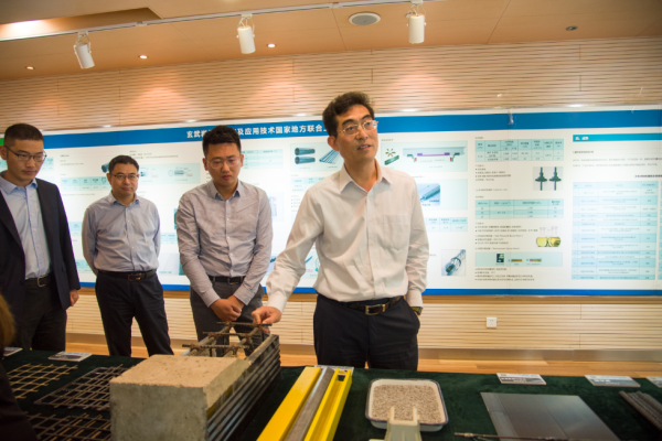 调研组一行先后参观了绿材谷科技展厅、结构实验室、微观实验室、纤维实验室及纤维生产线,相关条线负责人就材料性能、产品研发、工程应用、核心技术等向调研组作了详细汇报。