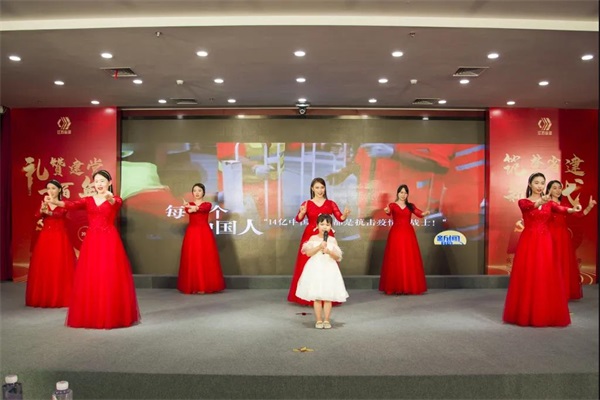 为庆祝建党100周年,讴歌党的坚强领导和英勇战斗在全国各地的防疫一线工作者,颂扬奋不顾身、忘我工作的大无畏精神和各界、各行、各业投身支援抗击疫情的感人事迹,由省建集团机关和绿材谷科技共同编排的手语歌舞--《听我说谢谢你》感染了现场观众。
