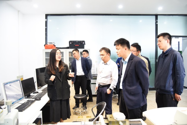 绿材谷科技副总经理周婕向客人一行介绍东南大学玄武岩纤维国地工程研究中心及绿材谷科技展厅和实验室