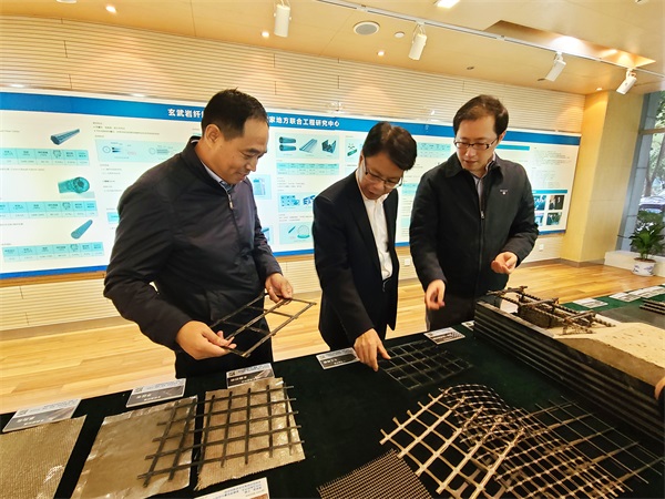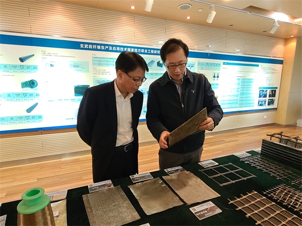 吴智深教授向王仁贵副总经理介绍了玄武岩纤维国家工程研究中心的建设和创新情况。他表示,公规院作为我国公路交通领域的领军企业,支撑了我国公路交通史上大量的开创性工作,极大地推动了我国公路交通事业的技术发展。希望能够与公规院加强沟通,深化合作,通过资源整合与优势互补,实现更多科研创新成果转化,助力交通强国建设。