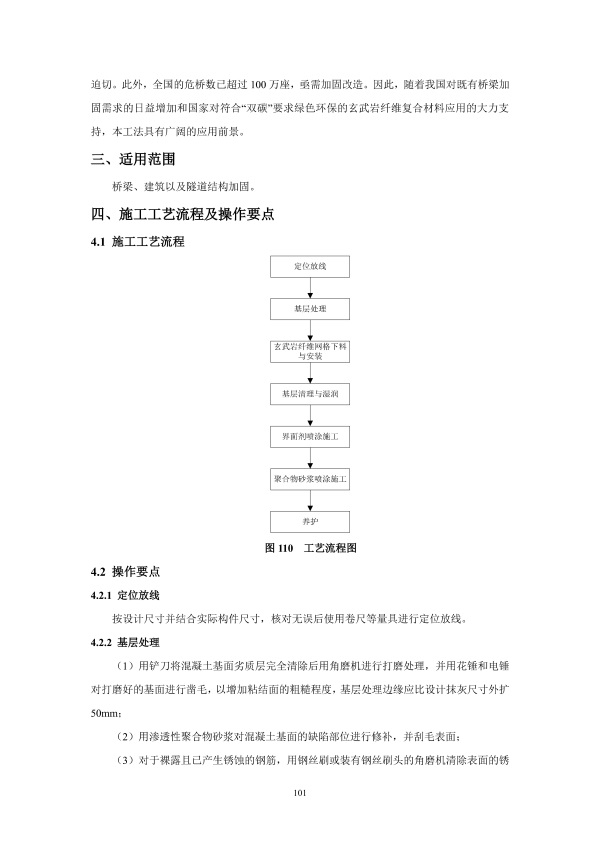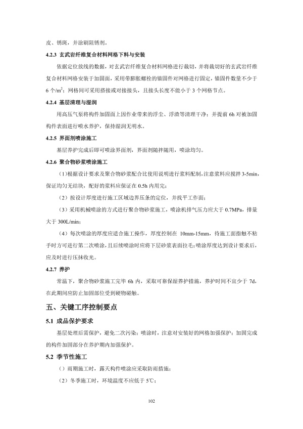 本工艺涉及的材料和设计方法应遵循以下标准:《结构工程用纤维增强复合材料网格》GB/T 36262-2018,《混凝土结构修复用聚合物水泥砂浆》JG/T 336-2011,《纤维增强复合材料工程应用技术标准》GB 50608-2020。