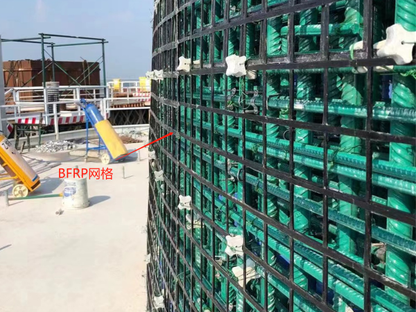 安全可靠性方面:本工艺采用连续化一体成型设备制备玄武岩复合材料纤维网格,其强度离散小于4%,材料性能稳定,现场施工质量可控。