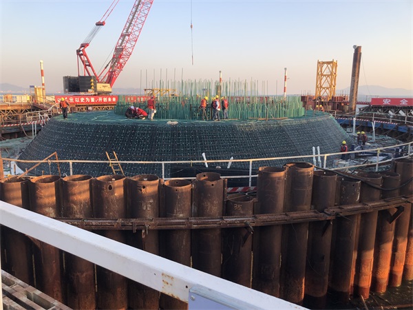 黄茅海跨海大桥玄武岩纤维网格施工现场照片