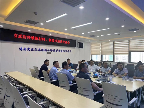 近日,东南大学玄武岩纤维国家工程中心副主任、绿材谷科技总经理魏星一行赴海南交投环岛旅游公路投资开发有限公司(简称“环岛旅游公路公司”)座谈交流,环岛旅游公路公司副总经理马吉倩出席并主持会议,双方就玄武岩纤维新材料、新技术的工程应用作了深入交流与探讨。东南大学玄武岩纤维工程研究中心顾问专家万习春作为特邀嘉宾出席会议。